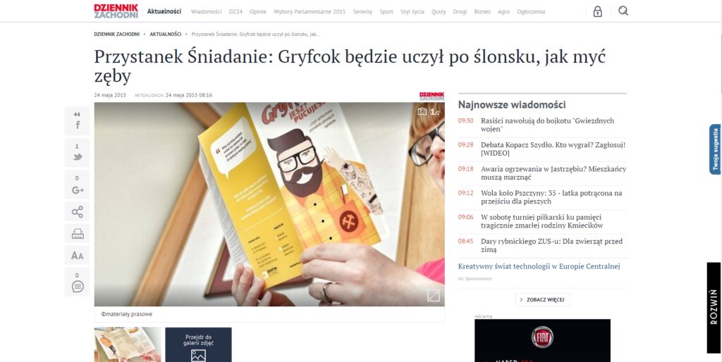 Ślonsko godka pomoże w edukacji stomatologicznej! Podczas dzisiejszego Przystanku Śniadanie ruszy miejska akcja profilaktyczna, podczas której dentyści będą edukować mieszkańców regionu. używając do tego… ślonski godki i specjalnej, animowanej postaci – Gryfcoka. Więcej