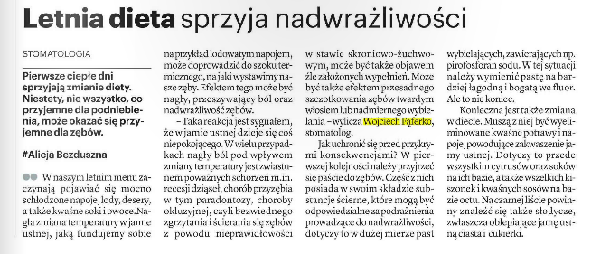 Zimne napoje mogą wywołać szok termiczny w jamie ustnej, a tym samym byc powodem nadwrażliwości. Jak z nią walczyć opowiada lek. stom. Wojciech Fąferko. Więcej