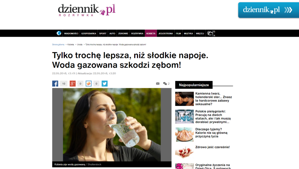 Dziennik.pl: Tylko trochę lepsza, niż słodkie napoje. Woda gazowana szkodzi zębom!